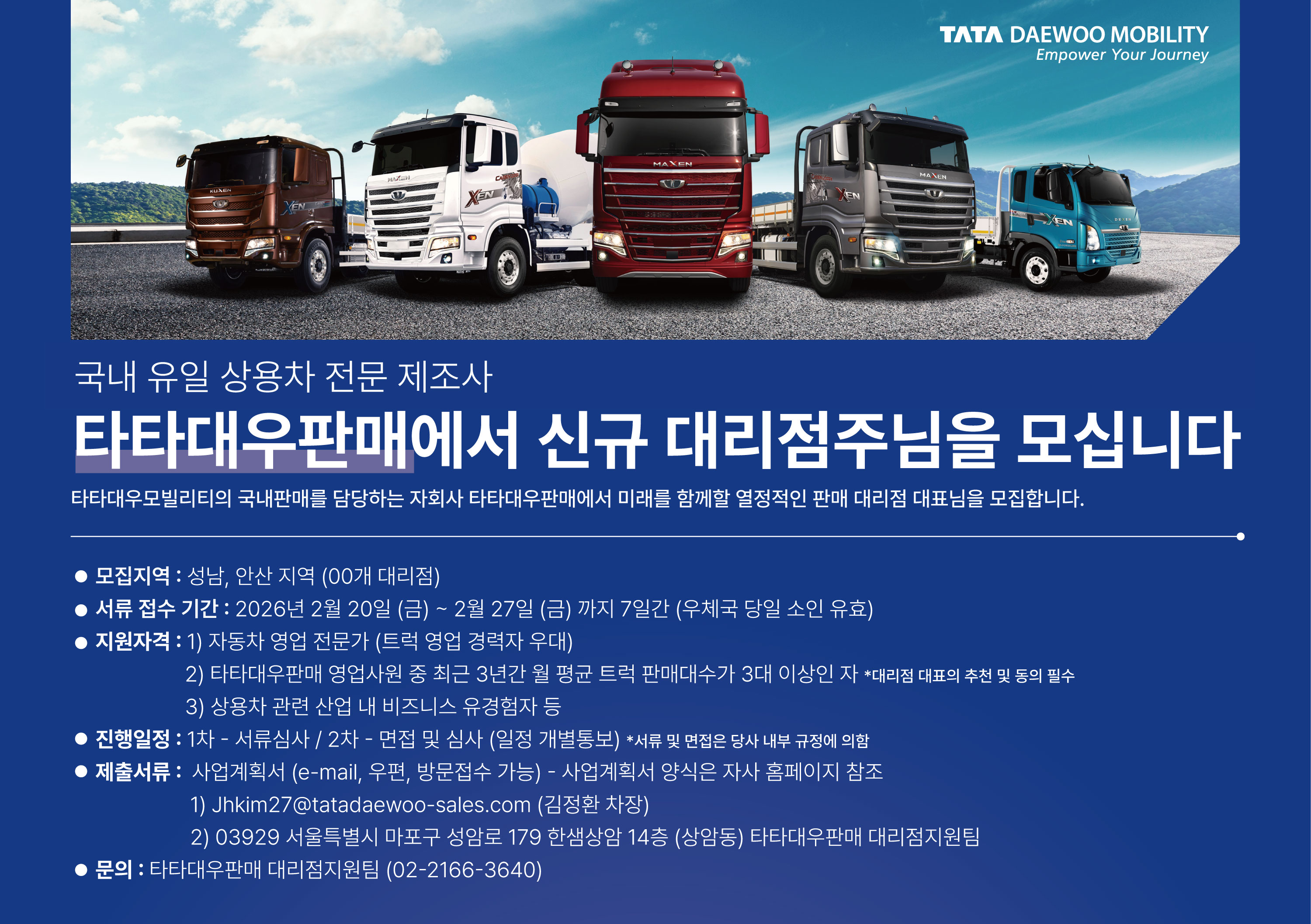 타타대우모빌리티, '경기 성남ㆍ안산' 지역 신규 판매대리점 모집